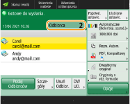 Sprawdzanie całkowitej liczby określonych odbiorcówCałkowita liczba określonych odbiorców jest wyświetlana w prawym górnym rogu ekranu. Umożliwia to potwierdzenie przed wysłaniem, czy liczba odbiorców jest prawidłowa.