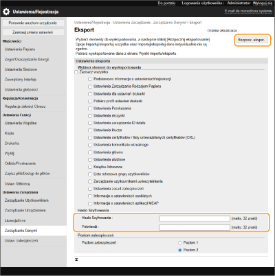 wybierz poziom zabezpieczeń z [Poziom zabezpieczeń] kliknij [Rozpocz. ekspor.]