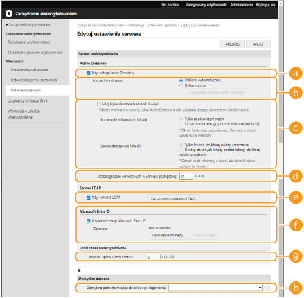 Określ lokalizację (poziom) dostępu i wyszukaj dane użytkownika podczas uwierzytelniania serwera Active Directory.