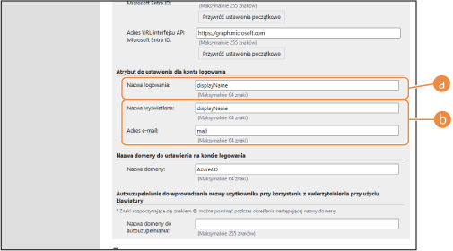 Atrybut displayName uzyskany z Microsoft Entra ID staje się nazwą logowania.