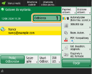 Sprawdzanie całkowitej liczby określonych odbiorcówCałkowita liczba określonych odbiorców jest wyświetlana w prawym górnym rogu ekranu. Umożliwia to potwierdzenie przed wysłaniem, czy liczba odbiorców jest prawidłowa.
