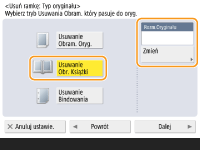 Naciśnij na <Usuwanie Obr. Książki> i sprawdź <Rozm.Oryginału>.