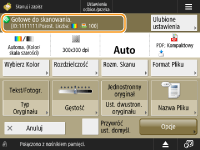 Wyświetla status ustawień, na przykład rozdzielczość i format skanowania. Upewnij się, że potwierdzono ustawienia, aby rozpocząć prawidłowy proces skanowania. Aby zmienić ustawienia, należy nacisnąć na przycisk znajdujący się pod wyświetlaną sekcją. Aby uzyskać informacje na temat formatów plików, patrz