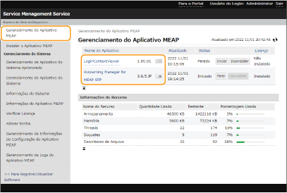 Consoante a aplicação MEAP, poderá ter de reiniciar (parar e iniciar) a aplicação. Gerir Aplicações MEAP