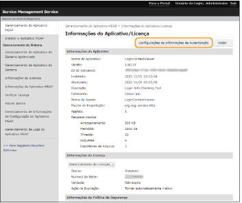 Se a aplicação de início de sessão for alterada, reconfirme as informações de autenticação em [Programar autenticação MEAP]. Poderá ser necessário reintroduzir as informações de autenticação.