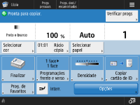 É possível alterar as programações relacionadas com a apresentação do ecrã, como, por exemplo, que ecrã é apresentado imediatamente depois de ligar a máquina e se é apresentada a mensagem de quantidade restante de papel e toner. <Programações de apresentação>