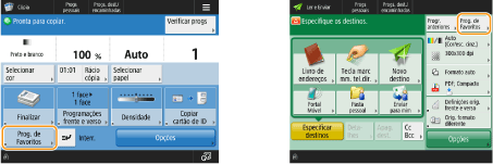 Se utilizar frequentemente as mesmas combinações de programações para cópia, fax e leitura, poderá ser útil gravar essas programações como <Prog. de Favoritos>.