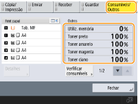 Pode verificar a quantidade restante de consumíveis a partir da Remote UI (Interface Remota). Verificar o Estado da Máquina