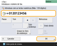 Especifique o destino no ecrã das funções básicas de fax. Ecrã das funções básicas de fax