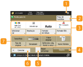 Pode selecionar o modo de cor para leitura carregando em <Selecionar cor>. Também pode selecionar as seguintes configurações de digitalização.