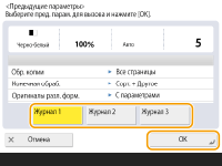 Можно вызвать параметры копирования, которые использовались в предыдущий раз. Перед копированием вызываемые параметры можно изменить.
