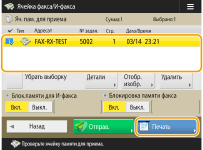 Полученные документы можно сохранить в хранилище аппарата (в ячейке памяти для приема) без вывода на печать. Благодаря возможности печатать только необходимые документы и удалять ненужные документы (например, сообщения прямой рассылки) из ячейки памяти для приема можно сэкономить бумагу.