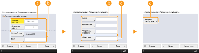 Аппарат может создавать ключи и сертификаты (сертификаты сервера) для зашифрованного обмена данными по протоколу TLS. Чтобы сразу приступить к использованию протокола TLS с шифрованием данных, воспользуйтесь ключом и сертификатом, которые предварительно установлены на аппарате. При необходимости обратитесь к администратору с просьбой создать ключ и сертификат. Однако следует помнить, что одного лишь создания ключа и сертификата недостаточно для организации зашифрованного обмена данными по протоколу TLS. Настройка ключа и сертификата для TLS