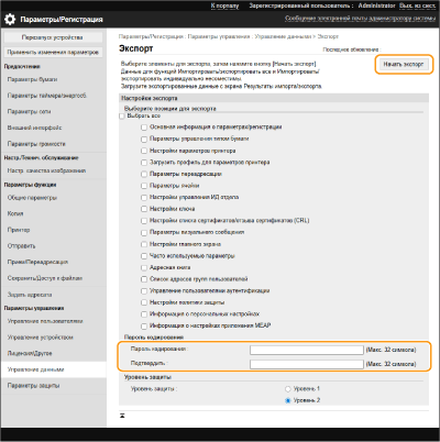 , выберите уровень защиты в [Уровень защиты] и нажмите [Начать экспорт]