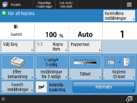 Du kan ändra inställningarna för skärmbildsvisningen, som t.ex. vilken skärmbild som visas när du slår på maskinen och om meddelandet för återstående papper och toner ska visas. <Visningsinställningar>