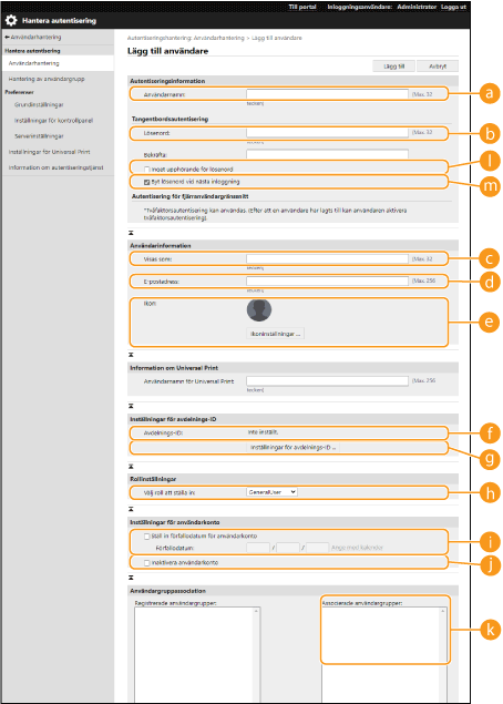 Kan inte ändras. Detta är den grupp som användaren som har registrerats tillhör efter serverautentisering.