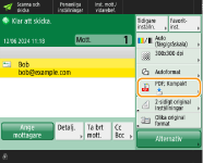 Läget kan bara användas om en e-postadress eller filserver anges som mottagare.