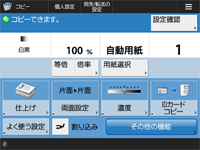 「ホーム」や基本画面に表示されている を押すと、ボタンの並べ替えやショートカット作成など、画面をカスタマイズすることができます。タッチパネルディスプレーをカスタマイズする![]() 「電源を入れた直後の画面」、「用紙やトナーの残量に関するメッセージ」など、画面表示に関する各種設定を変更することができます。<表示設定> 一定時間操作しなかったときに表示される画面を設定することができます。<オートクリア後の機能> |