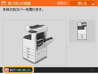 (状況確認)を押すと、<状況確認>画面が表示されます。印刷や送受信などの動作状況だけでなく、トナー残量やメモリー残量など本体に関わる情報も確認することができます。