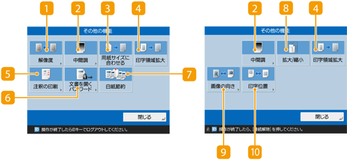 機能によっては、詳細については<コピー>の機能を参照しています。 |