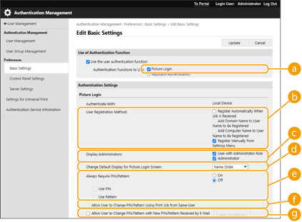 If the authentication method is [Picture Login] and [Register Automatically When Job Is Received] is enabled