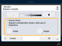![]() | È possibile regolare la densità dell'intero documento. Per esempio, l'aumento della densità della copia consente di leggere facilmente i caratteri chiari scritti a matita. Regolazione della densità delle copie | |