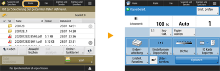 Sie können eine Schnelltaste für die Funktionen im Bildschirm <Startseite> anlegen. Verwenden Sie diese Taste, um auf eine andere Funktion zuzugreifen, ohne zum Bildschirm <Startseite> zurückzukehren. Zum Anlegen einer Schnelltaste melden Sie sich mit Administratorrechten an.