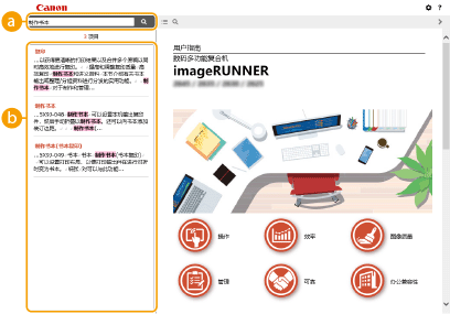 单击可以显示检索屏幕。包含一个文本框,以便按关键字执行检索并找到要查找的页面。