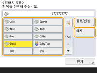 원터치 버튼의 설정을 편집하려면 <등록/편집>을 누릅니다. 설정 편집 방법에 대한 자세한 내용은