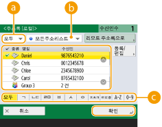을 누르면 각각 팩스 및 그룹 수신인이 표시됩니다.