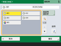選擇所需的接收者,並按下 <詳細資訊>。若要從指定的接收者中刪除接收者,請按下 <刪除接收者>。伺服器機器正在執行系統管理員資訊設定時 | 伺服器用戶端正在執行系統管理員資訊設定時 | 伺服器機器與用戶端機器所設定的系統管理員識別碼和系統管理員 PIN 相符 | 可使用遠端通訊錄/單鍵按鈕 |