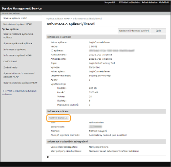 Pokud máte aplikaci s licencí, která brzy vyprší, můžete také zkontrolovat datum vypršení platnosti licence z <Kontrola počit. MEAP> u MEAP v nabídce Domů ovládacího panelu.