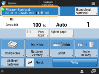Zde se zobrazuje stav nastavení, např. poměr kopírování, velikost papíru a počet kopií. V zájmu správného okopírování dokumentů nastavení vždy zkontrolujte. Chcete-li nastavení změnit, stiskněte tlačítko pod zobrazením.