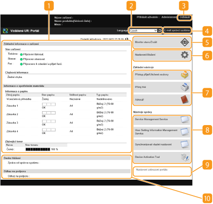 Když k obsluze stroje používáte Remote UI (Vzdálené UR), nepoužívejte tlačítko webového prohlížeče [Zpět]. Jestliže tlačítko [Zpět] použijete, může se stát, že se stránka správně nezmění.