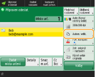 Chcete-li po skenování vybrat místo určení z obrazovky <Rychlá volba>, nastavte funkci <Rychlá volba> na možnost <Výchozí obrazovka>. Práce požadovaná pro odesílání naskenovaných dokumentů do stejného místa určení může být omezena. <Výchozí obrazovka>
