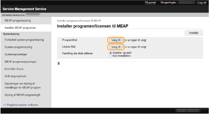 Afhængigt af MEAP-applikationen kan den kræve en særlig betingelse for at kunne installeres. For flere informationer kan du se brugervejledningen til den MEAP-applikation, der skal anvendes.