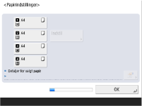 For informationer om skærmbilledet og instruktionerne om at ændre indstillingerne kan du se Angivelse af papirformat og papirtype i papirskuffen.