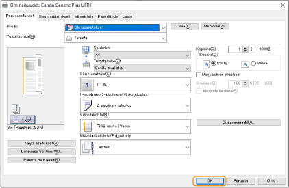 Määritä tarvittavat tulostusasetukset ja valitse [OK].