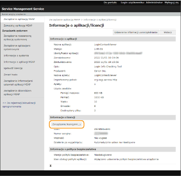 Jeśli licencja danej aplikacji wkrótce wygaśnie, można również sprawdzić datę wygaśnięcia licencji za pomocą polecenia <Sprawdź Liczn. MEAP> dla MEAP w Główny panelu sterowania.