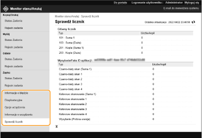 Możesz skorzystać z interfejsu Remote UI (Zdalny interfejs użytkownika), aby sprawdzić status dokumentów oczekujących na przetwarzanie oraz rejestry dokumentów, które już zostały przetworzone. Możesz również sprawdzić status urządzenia, taki jak informacje o błędach i pozostała ilość materiałów eksploatacyjnych.