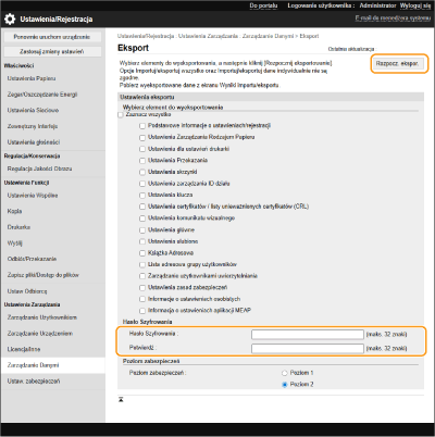 wybierz poziom zabezpieczeń z [Poziom zabezpieczeń] kliknij [Rozpocz. ekspor.]