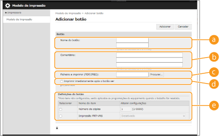 Introduza a informação do botão, e configure as definições necessárias.