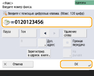 Международная отправка факсовСначала введите международный код доступа, потом код страны, а затем номер факса. Если не удается установить соединение с адресатом в другой стране, нажмите кнопку <Пауза>, чтобы вставить паузу между кодами.