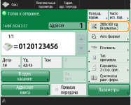 Задания на отпр. по факсу/И-факсу: <Приоритет качества> (<Приор. скор./кач. изобр. для Ч-Б сканирования>)Когда настроено несколько телефонных линийМожно выбрать телефонную линию, используемую для отправки факсов, нажав <Параметры>