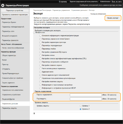 , выберите уровень защиты в [Уровень защиты] и нажмите [Начать экспорт]