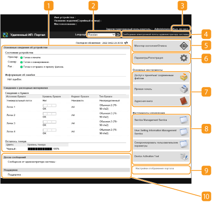 Если одновременно несколько пользователей используют Remote UI (Удаленный ИП) или если одновременно используются панель мониторинга и Remote UI (Удаленный ИП), выполняется последняя выполненная операция.