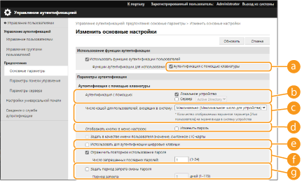 Установите флажок [Аутентификация с помощью клавиатуры].