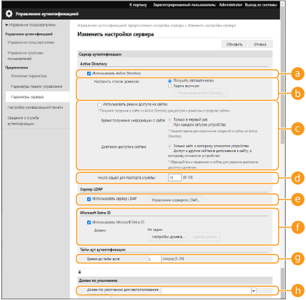 Чтобы указать в качестве дополнительного устройства аутентификации Active Directory/сервер LDAP/Microsoft Entra ID, необходимо зарегистрировать информацию о сервере, который используется для аутентификации. Проверьте подключение к серверу.