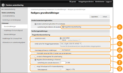 Konfiguration av detaljerade inställningar för autentiseringsfunktioner