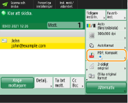 Ange mottagare på skärmbilden med grundläggande scanningsfunktioner. Skärmbilden med grundläggande scanningsfunktioner